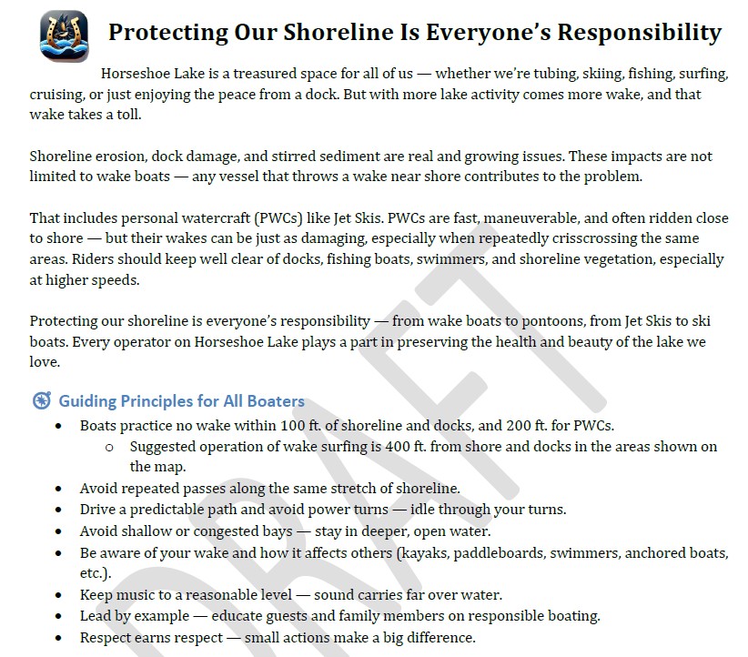 Please Review the Below Shoreline and Wake Guide. This Draft has been prepared to help[…]